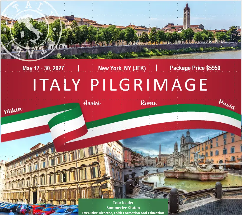 We visit San Francesco d’Assisi ad Acilia, a modern church dedicated to St. Francis, located near the archaeological site of Ostia Antica, the ancient port city of Rome at the mouth of the Tiber River. Ostia’s remarkably well-preserved ruins include ancient streets, mosaics, baths, a theater, and significant archaeological remains, such as St. Monica’s tombstone at its original site. Farewell dinner. Overnight in Rome. (B)
